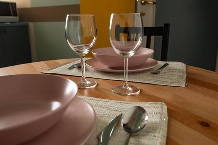 è composto da un grande locale con zona letto, zona living e angolo cucina con frigorifero, microonde, piastra di cottura a induzione e l'equipaggiamento completo per i pasti per 4 persone.