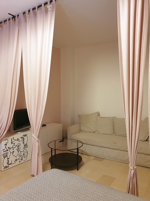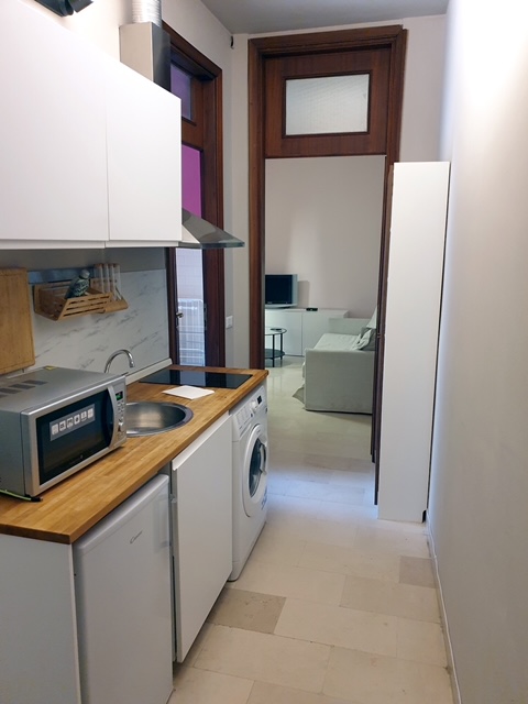 L'appartamento è composto da due grandi camera con la zona letto e la zona living. Abbiamo poi la cucina completamente equipaggiata